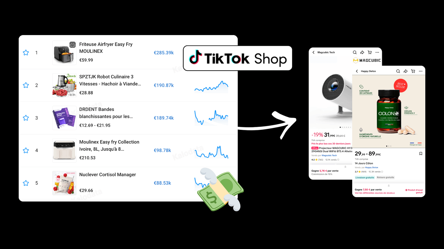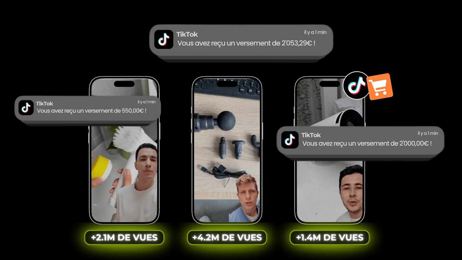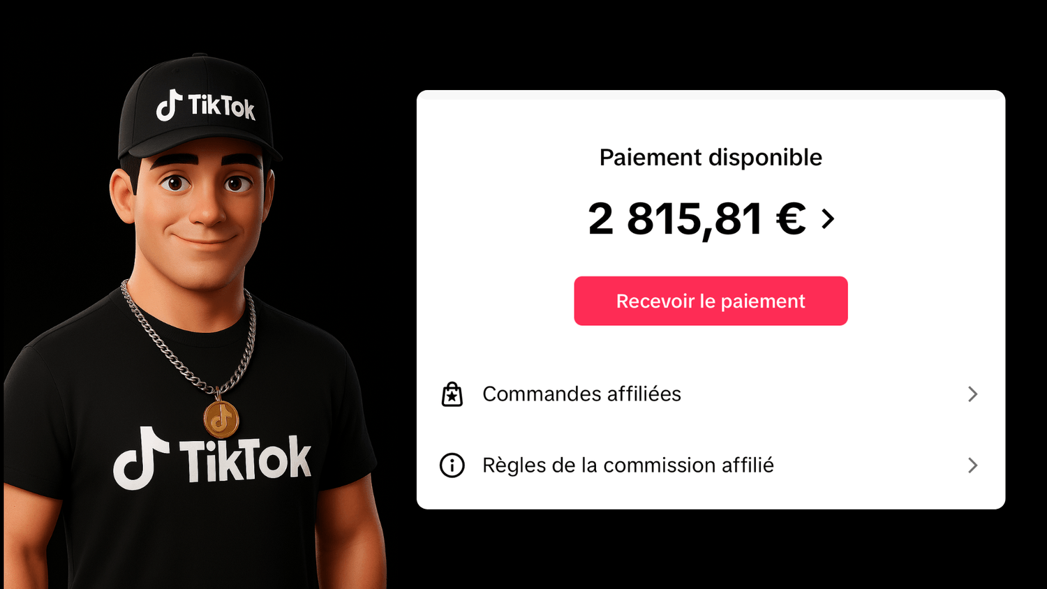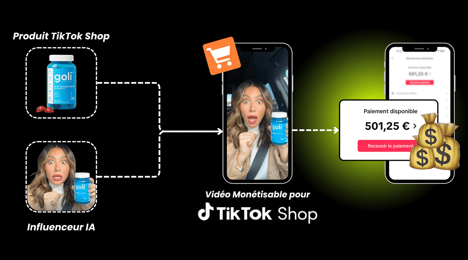 Vous publiez la vidéo sur TikTok, l'algorithme la pousse auprès de milliers de personnes — et à chaque vente, votre commission tombe directement sur votre compte bancaire.