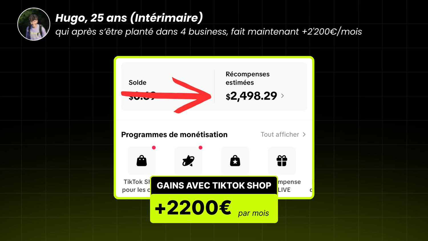 “480€ gagnés grâce à une vidéo de 15 secondes. Ça m’a pris 8 minutes à faire.”